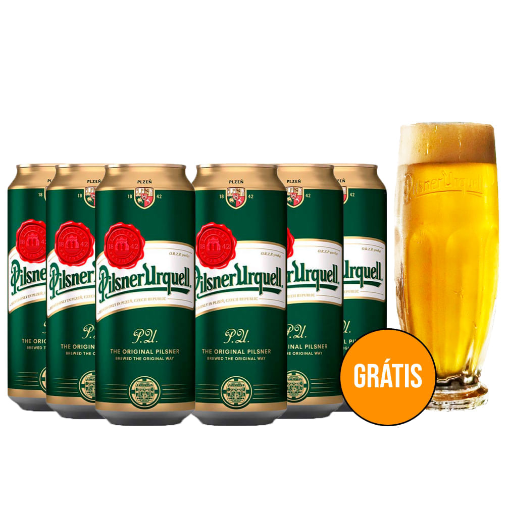 Kit 6 Cervejas Tcheca Pilsner Urquell 500ml + Copo Grátis