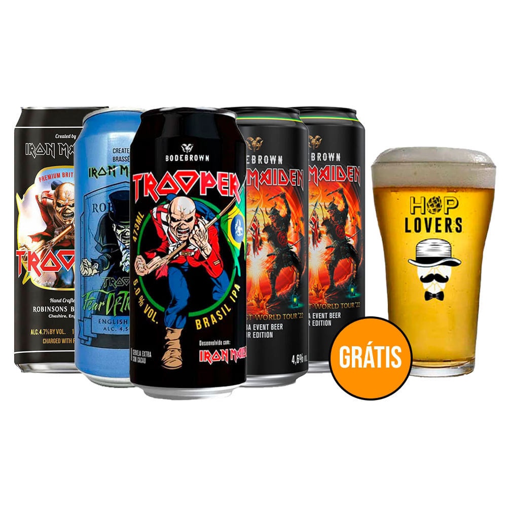 Kit Degustação 5 Cervejas Trooper + copo grátis